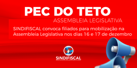 SINDIFISCAL acompanha, nesta segunda-feira (15), articulações finais para envio da PEC do Teto à Assembleia Legislativa