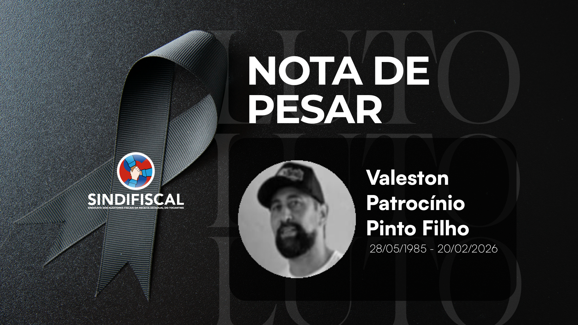 O SINDIFISCAL – Sindicato dos Auditores Fiscais da Receita Estadual do Tocantins manifesta profundo pesar pelo falecimento de Valeston Patrocínio Pinto Filho, filho do auditor fiscal Valeston Patrocínio Pinto, ocorrido nesta sexta-feira, 20 de fevereiro de 2026.