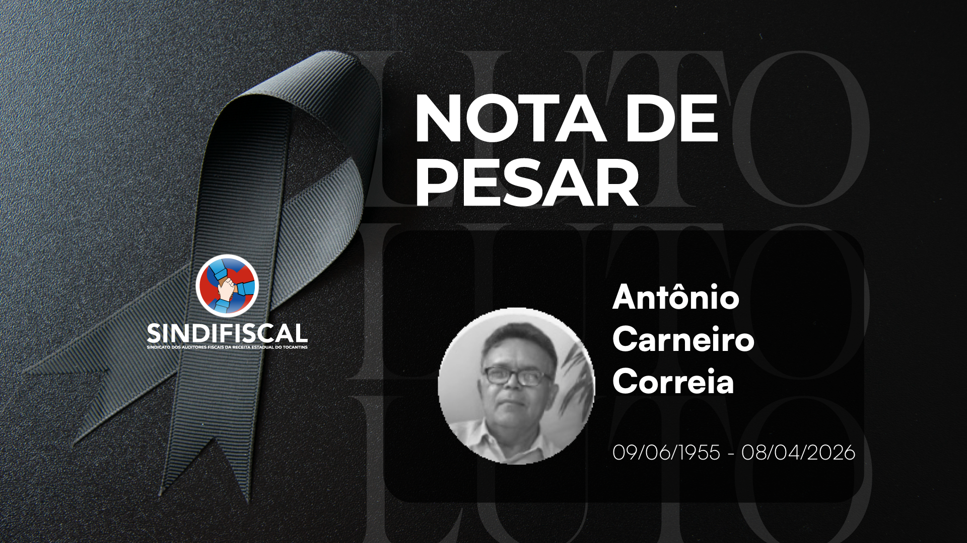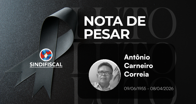 O SINDIFISCAL – Sindicato dos Auditores Fiscais da Receita Estadual do Tocantins manifesta profundo pesar pelo falecimento de Antônio Carneiro Correia, ocorrido nesta quarta-feira, 8 de abril de 2026, em Goiânia (GO).